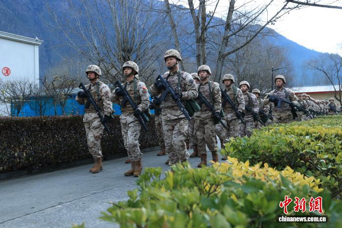 武警第二机动总队驻西藏某部组织新年开训练兵